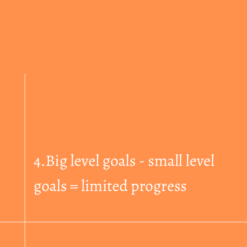 Without incorporating small level goals into everyday life, there is a limited chance of achieving progress in the bigger level goals.