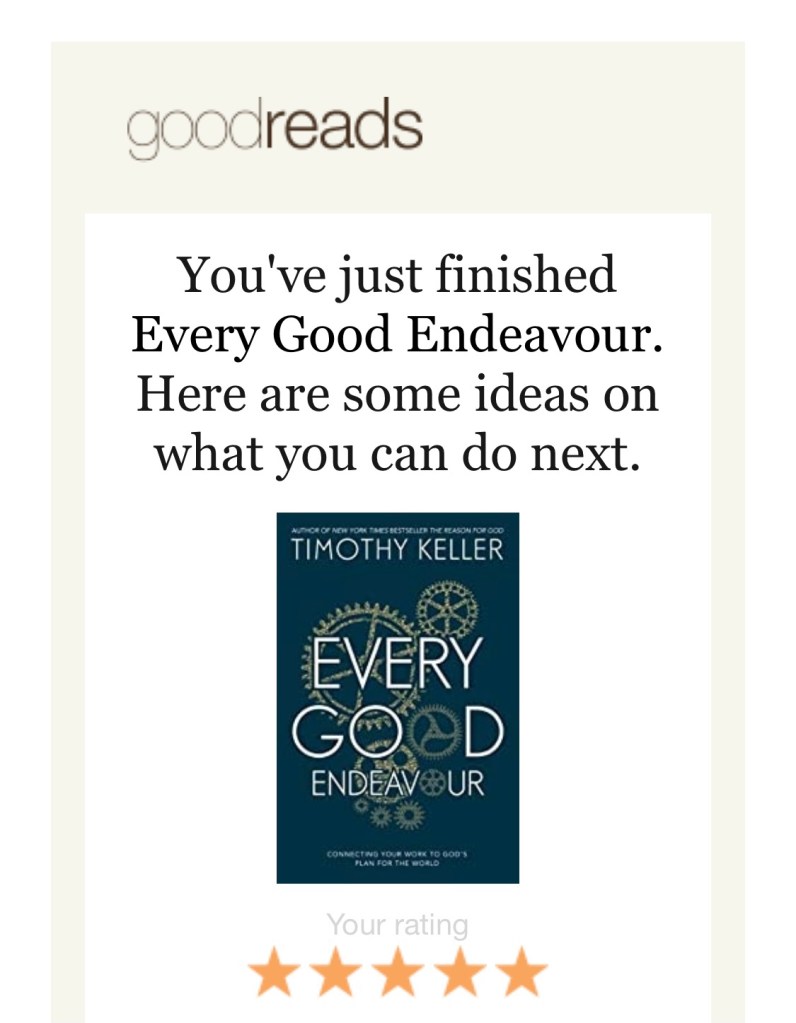 These are just a few of the other 180 highlights and notes I made as I read through. There is so much to unpack in this book as it relates to faith and work that I don’t think this one book review can do justice to.I found another article that summarises the book quite well. The article gives you a bit more detail but I really do think this is a book that should be read to get a full and broader context for the subject matter.
